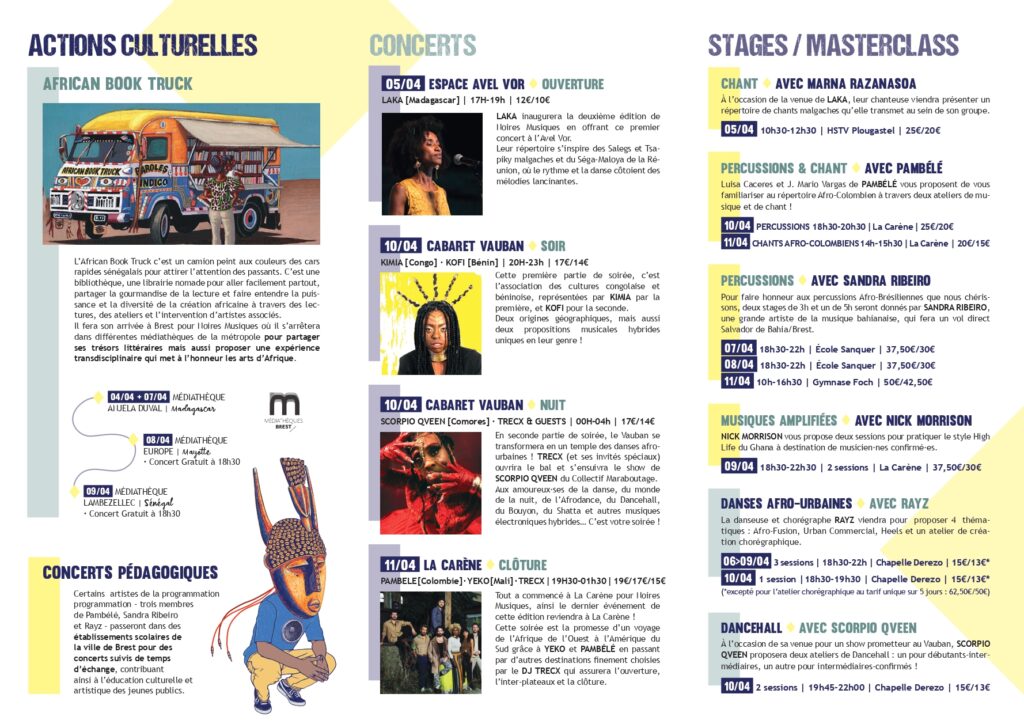 Voici l’ensemble des rendez-vous de cette édition de Noires Musiques :